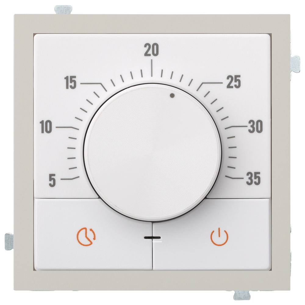 Термостат для теплого пола состоит из трех компонентов — механизма белого цвета, адаптера выбранного цвета и датчика теплого пола. Механизм термостата устанавливается в стандартный подрозетник с установочным диаметром 60 мм. Для окончательной сборки изделия необходимо добавить рамку с необходимым количеством постов.
