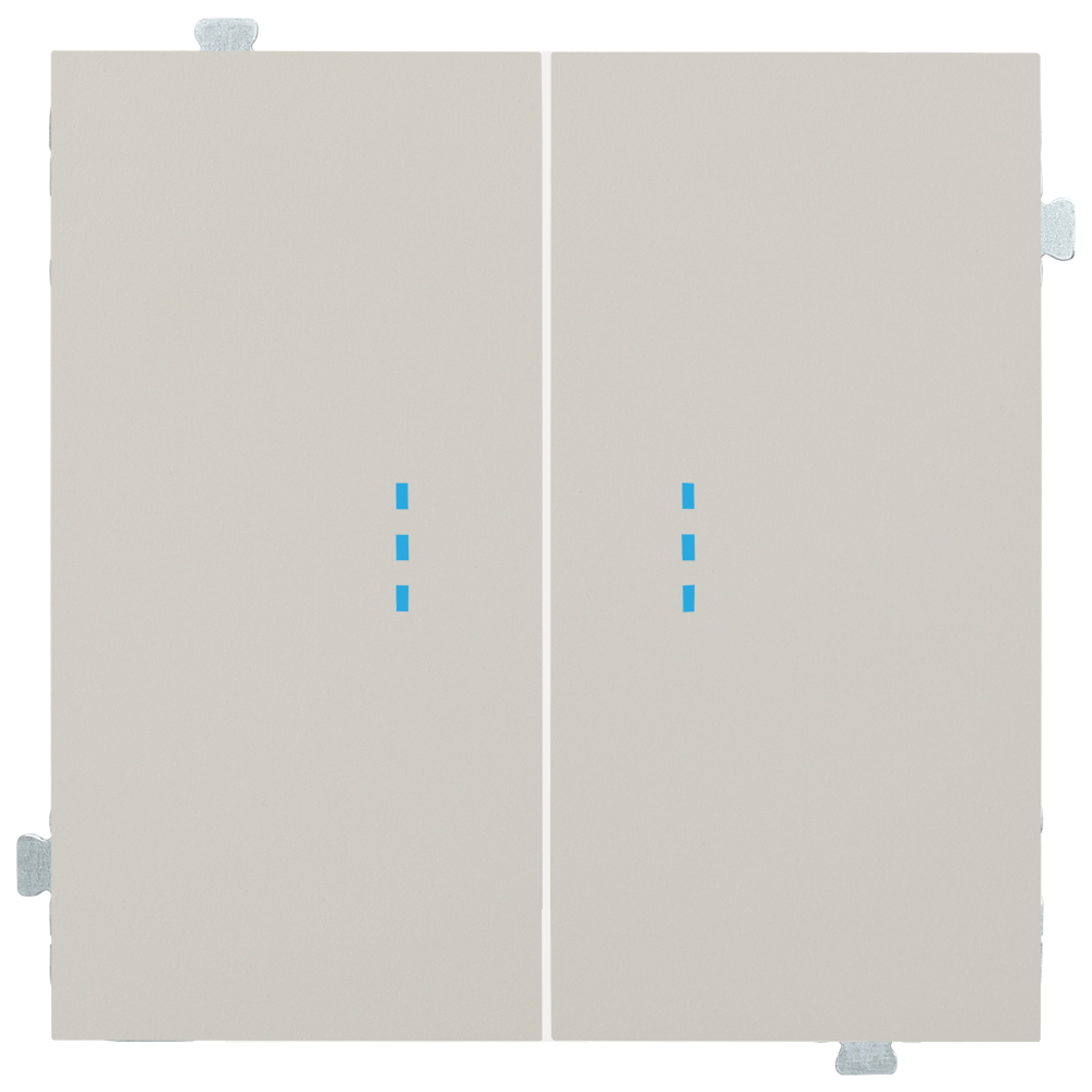 Выключатель двухклавишный проходной с подсветкой состоит из трех компонентов — механизма проходного выключателя, пары ламп подсветки и пары клавиш выбранного цвета. Механизм выключателя устанавливается в стандартный подрозетник с установочным диаметром 60 мм. Лампы подсветки защелкиваются в механизм выключателя с фронтальной стороны и автоматически подключаются. Для окончательной сборки изделия необходимо добавить рамку с необходимым количеством постов.